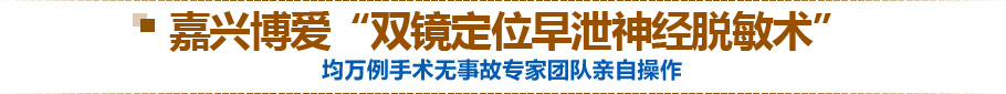 嘉兴博爱男科推出的“双镜定位早泄神经脱敏术”通过BIO阴茎敏感神经检测仪,准确锁定阴茎背神经的多余敏感背神经和射精阀值(达到这个点就会出现射精现象),手术医生在双目生物显微镜可视状态下对分布在龟头冠状沟处和阴茎背部的神经进行准确定位,在不损伤主干神经和血管下,确定需要“脱敏”的神经,减少敏感神经数量,以此增强阴茎、龟头的耐受性,提高射精阈值,从而达到延迟射精治愈早泄的目的。